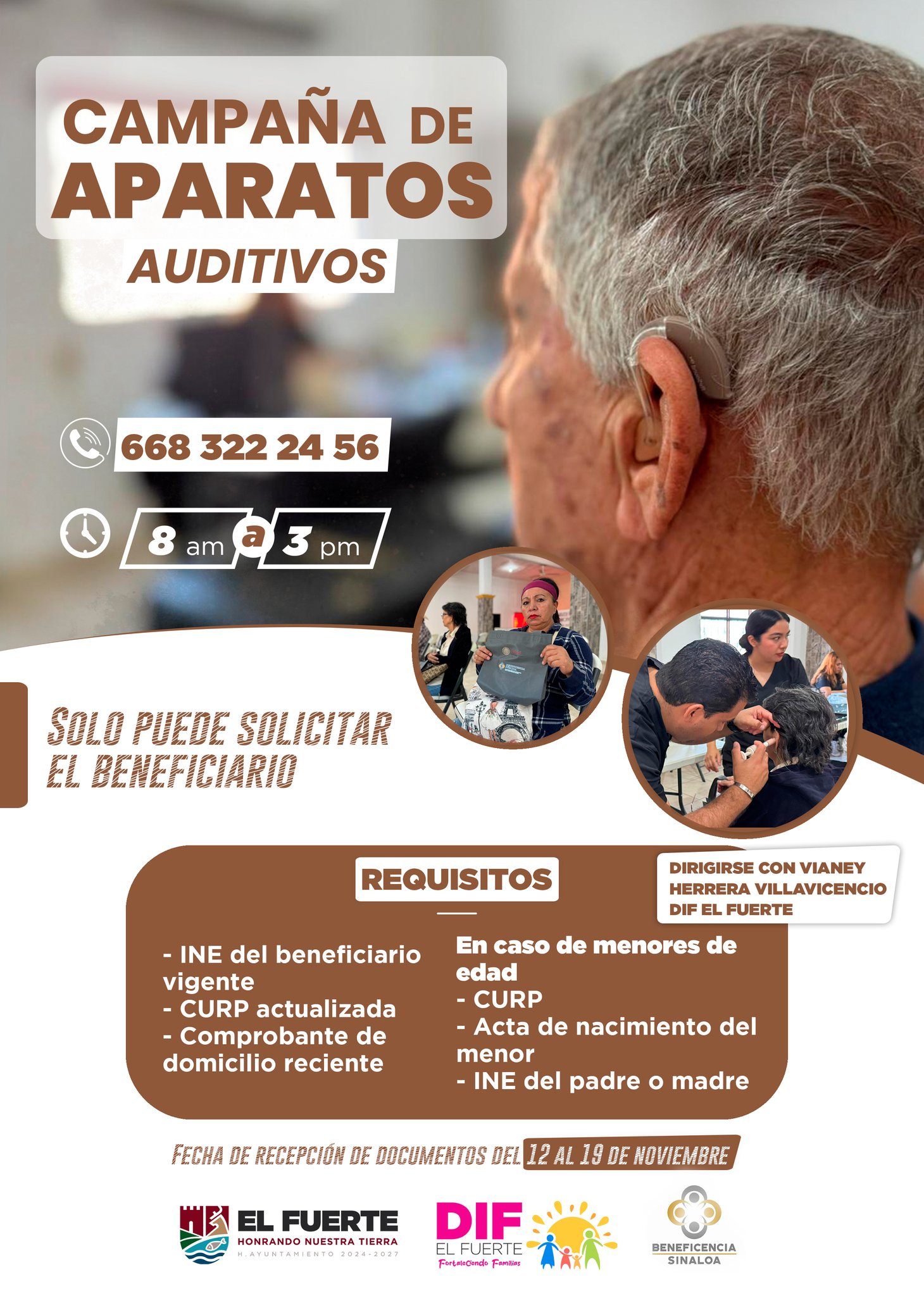 El DIF El Fuerte, en coordinación con Beneficencia Sinaloa, invita a todas las personas que necesiten apoyo auditivo a participar en esta importante campaña. Solo puede solicitar el apoyo el beneficiario. Recepción de documentos: delLeer más -