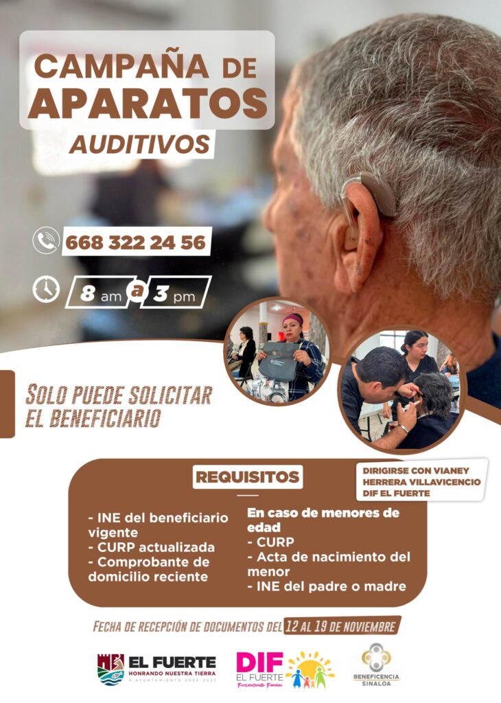 El DIF El Fuerte, en coordinación con Beneficencia Sinaloa, invita a todas las personas que necesiten apoyo auditivo a participar en esta importante campaña.