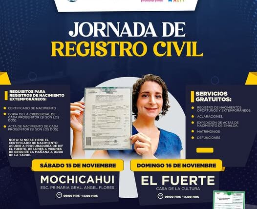 El H. Ayuntamiento de El Fuerte y el DIF El Fuerte te invitan a participar en esta jornada donde podrás realizar diversos trámites totalmente gratuitos.